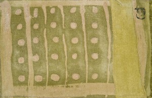 (petroglyph series, spots) dye and batik on canvas, 52cm x 42cm framed, £300. Photo: Emma Scott.